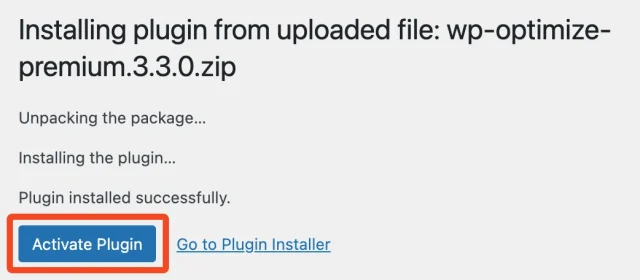 7. Click on Activate Plugin to activate WP-Optimize Premium.