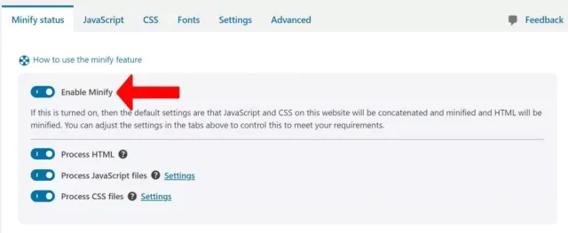 We have designed the Minify feature to be easy to use regardless of a user’s level of skill and knowledge. For most people, all you have to do is toggle the main switch to “enable minify”.